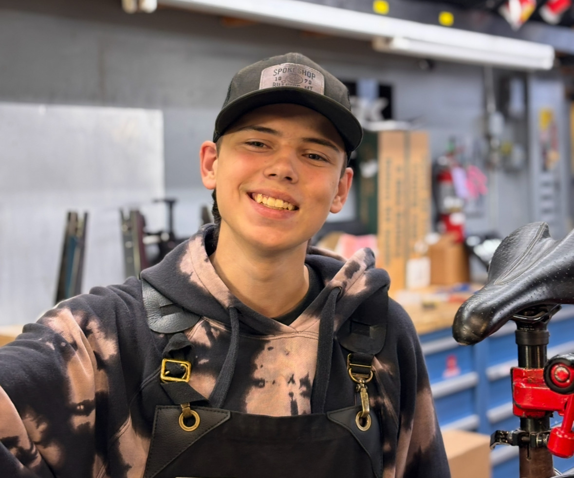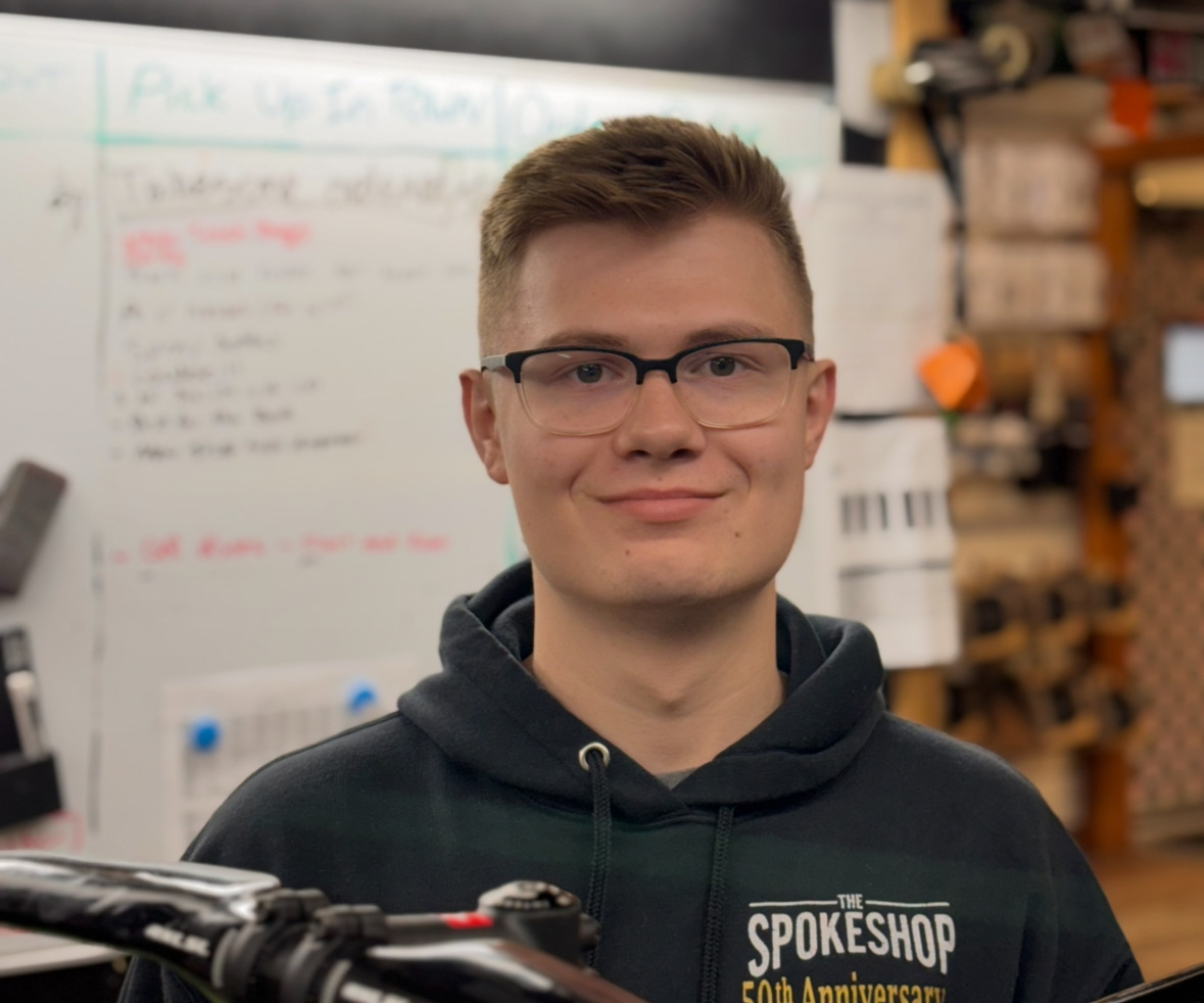 Jaden has been with The Spoke Shop since September of 2024, but has been a bicycle tech since 2020. He was gifted his first BMX bike at the age of seven and the rest was history! His bike collection ranges from a vintage steel Trek Multitrack to a 2025 Trek Checkpoint. Jaden has a soft spot for old bikes and loves restoring and working on classics.